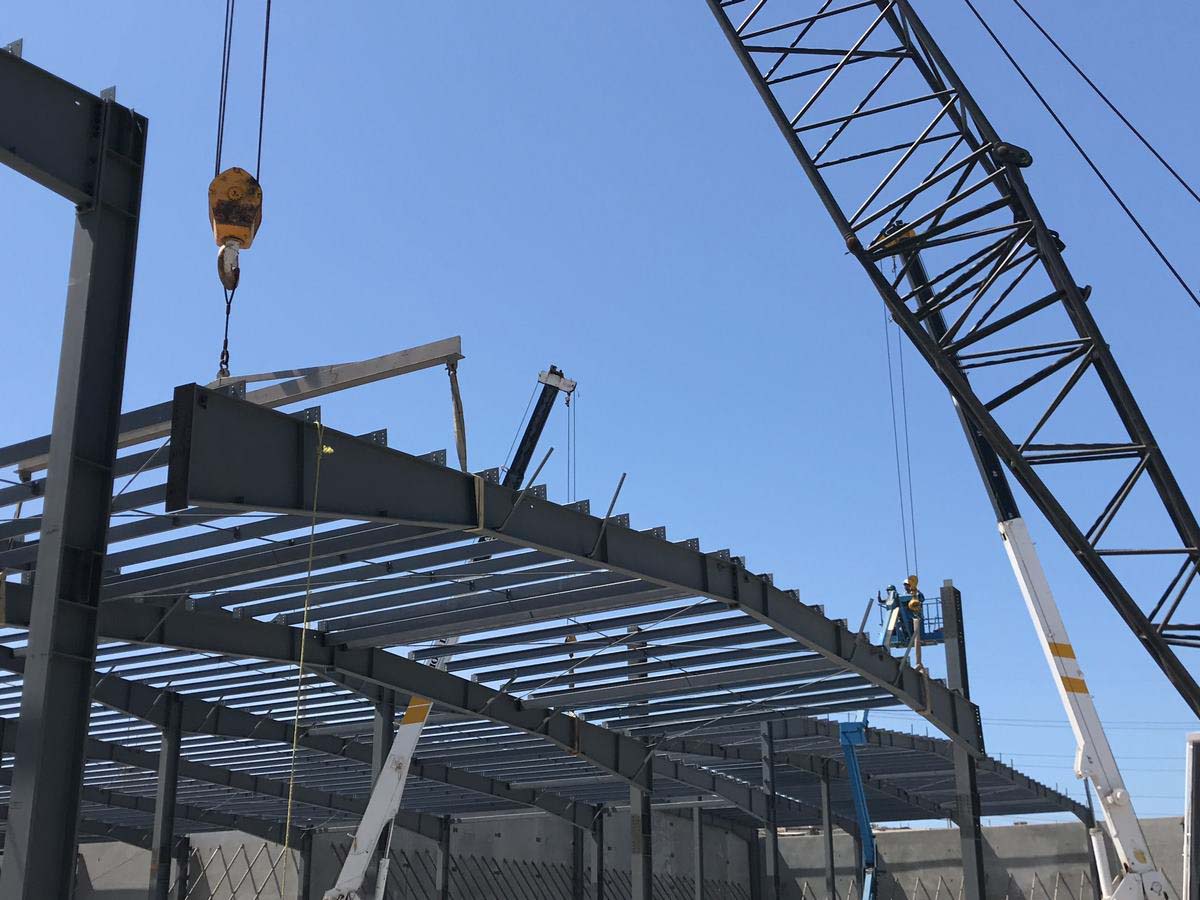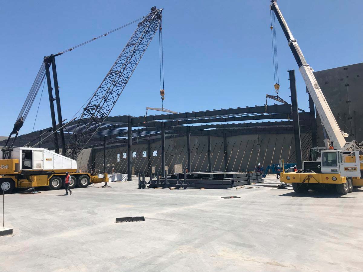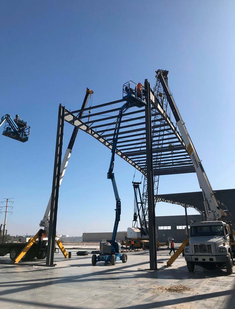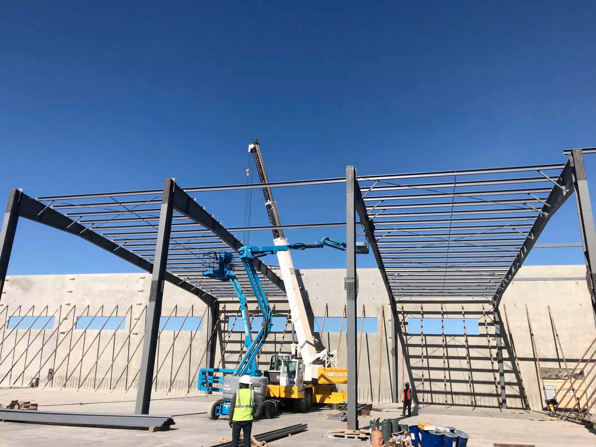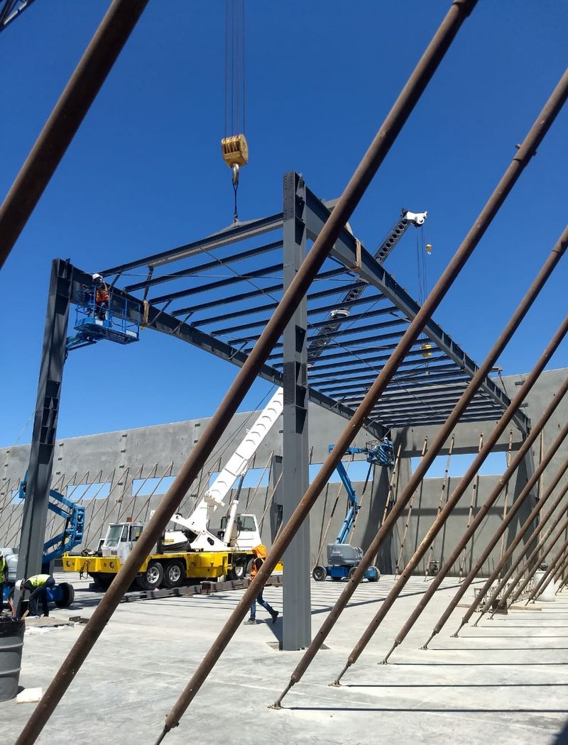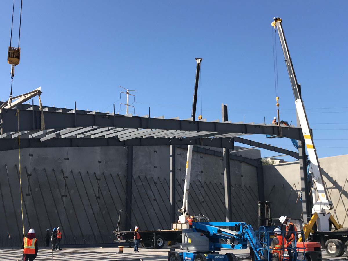 Fabricación y montaje de estructuras para nave industrial, montaje de muro Tilt Up.